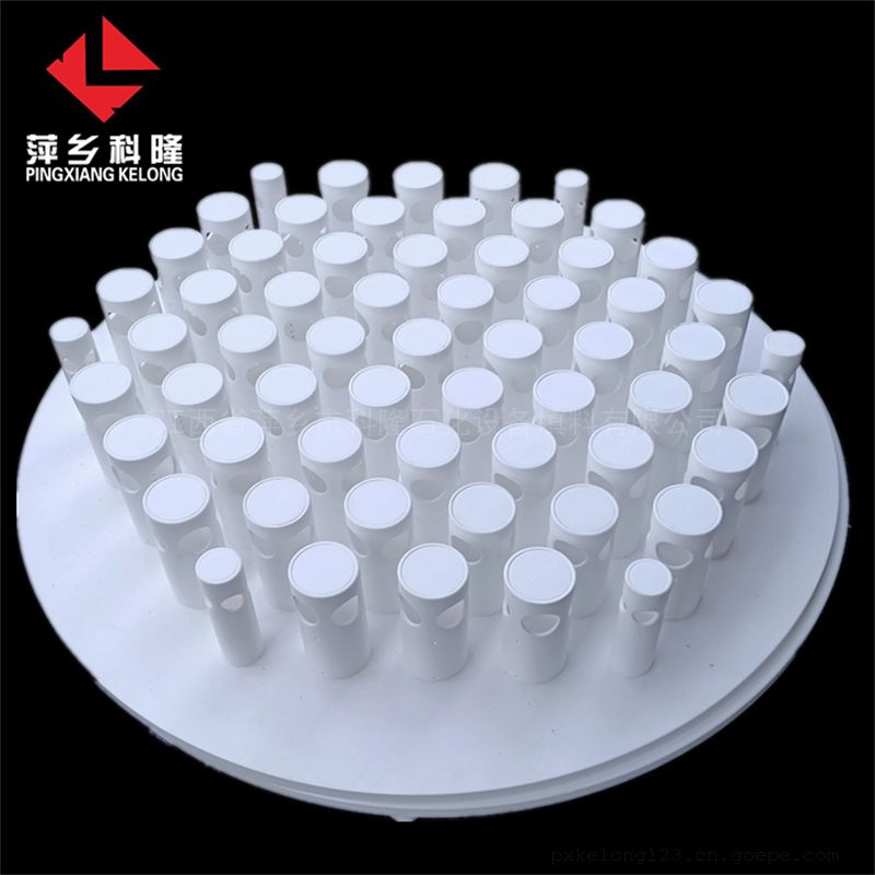 萍乡科隆生产的PTFE孔板波纹规整填料具有通量大、效率高等特点,广泛用于超纯物系的吸收和精馏;该系列规整填料通过江西省萍乡市科隆石化设备填料有限公司的测试,其分离效率在中等喷淋密度时与同样比表面积的金属规整填料相比低7.8%;在模拟计算和实际设计的时候精馏塔比相类似的金属塔要略高一些。