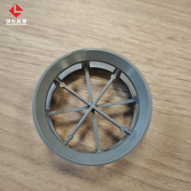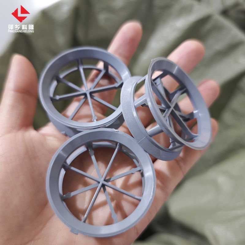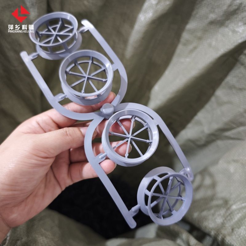 江西萍乡科隆公司生产的CPVC双翻边阶梯环填料,主体呈环形结构,其高径比通常设计为 1:2,这种比例优化了气体和液体在填料层内的流动路径。在环的两端分别设置了翻边结构,一端为锥形翻边,另一端为圆形翻边(或类似结构),这种非对称设计打破了传统填料结构的轴对称性。同时,环体上通常还设有窗口,内部配备加强筋等增强结构,如竖直加强筋和水平加强筋。气液分布与传质效率提升