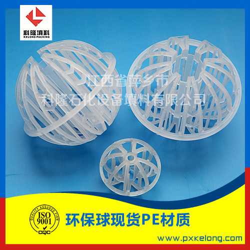 耐高温PVDF环保球填料科隆牌塑料聚丙烯哈凯登填料的应用原理是根据不是只有具有较大表面的填料才有优异的效率的理论应用经验,因为有时一个具有较大固体表面的填料会产生较大的压强降和易发生堵塞,而气液间的传质过程却仅仅发生在这些表面的边缘、棱角等处。在这大量表面的底部是干的,而气体却从此一穿而过。因此对于传质只有边缘吸有边缘处才是重要的。所以此种填料的结构不是由一些大块表面组成。