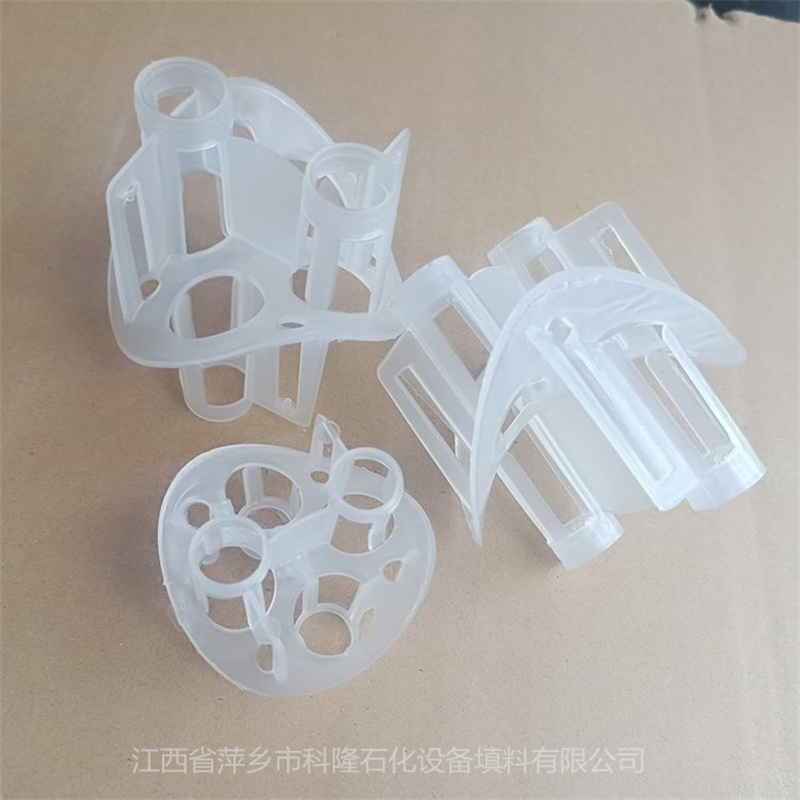 科隆填料聚丙烯PP环保气液塔海尔环填料主要采用聚丙烯的化学稳定性很好,除能被浓硫酸及浓硝酸侵蚀外,对其他各种化学试剂都比较稳定,同时它的化学稳定性随结晶度的增加还有所提高。产品经注塑成复杂结构的优点,以鞍形为主体,锥体开孔圆筒,增大了比表面积和孔隙率,改善了气液在填料层的分布。产品具有低压降、填料层气液分布均匀,抗污性强。塑料海尔环产品除具有通量大、压降低,耐腐蚀及抗撞击性能好等优点以外,填料间不会嵌套,壁流效应小和气液分布均匀等优点。而且强度好、抗撞击、安装无套叠现象,同时壁流疚效应小和气液分布均匀等优点。