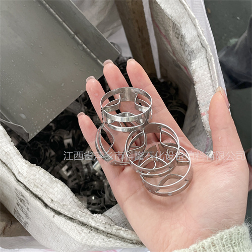 我公司(江西省萍乡市科隆石化设备填料有限公司)生产的QH-1QH-2QH-3系列金属扁环填料目前有三种型号,即内弯弧形筋片扁环填料(HQ-1)、梅花扁环HQ-2,超级扁环HQ-3,材质有304、321、316、316L等。清华大学研发的QH-1金属扁环填料特点是对称均匀的内弯弧形筋片能促进液滴群的分散-聚会-再分散的循环过程,有效降低填料层内返混,从而提高液液两相间传质性能。这三种填料用于低界面张力体系的液液萃取时,性能明显优于鲍尔环、矩鞍环等新型填料,一般可提高传质效率20%以上。金属扁环也适用于汽液传质过程。