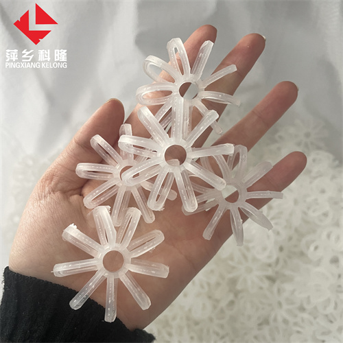 喷淋塔除雾层用DN47无边花环填料PP材质材料如何选型:用户可根据塔内使用条件(如温度、压力、介质等)选择不同材质如聚丙烯(PP)花环填料、RPP(玻璃增强聚丙烯)花环填料、聚氯乙烯(PVC)花环填料、氯化聚氯乙烯(CPVC)花环填料、聚偏氟乙烯(PVDF)花环填料等塑料花环填料。