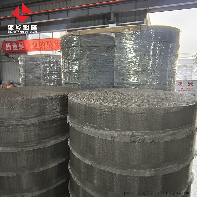 不锈钢丝网波纹填料由不锈钢丝网波纹片组装而成.填料在塔呐构成均匀的几何图形排列,规定了汽液流路,改善了沟流及壁流现象.由于丝网独具的毛细作用,又使表面积有更为有效的润湿性能,有低的压降和少的持液量,因此具有很高的分离效率。特别适用于难分离物系及热敏性物系。广泛应用于石油化工、如炼油厂催化裂化提馏段、化肥、天然气、生物化工、环境工程等广大领域。塔设备直径达3米,分离性能高于不锈钢孔板波纹填料。可适于400℃以下的操作温度,对低温操作其温度无限制。